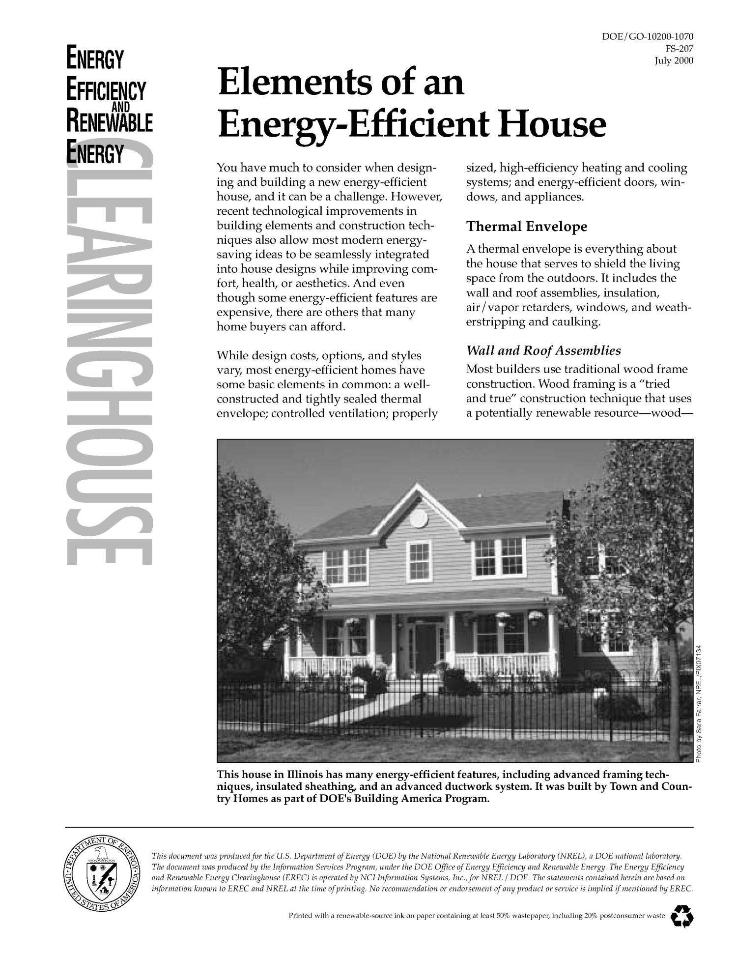 Elements of an EnergyEfficient House Energy Efficiency and Renewable